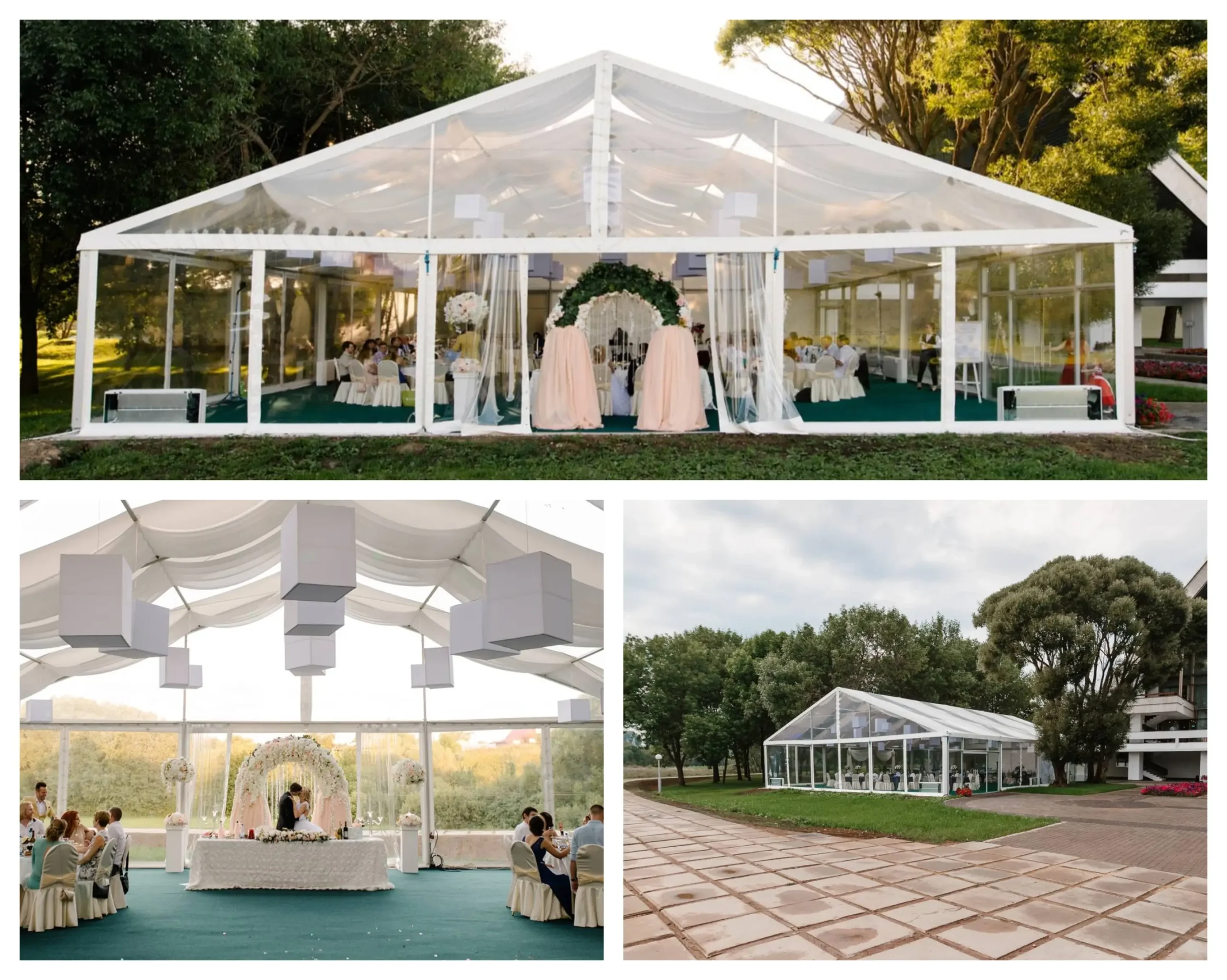 If you want to hold an outdoor wedding close to nature but are worried about the weather and temperature instability, transparent tents wedding event are a good way to enjoy the beauty of the outdoors and the comfort of indoor space at the same time. In addition, the creative tent arrangement and design, can make the entire wedding more venue from the visual, and more beautiful and romantic.