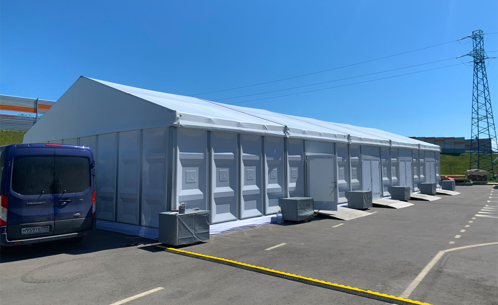 This is Yuntu’s most successful or meaningful case in solving the problem of workers’ accommodation and resettlement and temporary warehouses. This is the case of the middle ring road construction in Kazakhstan. The dimension of the temporary warehouse is 10x25x4m, which can solve the accommodation problem of 20-30 construction workers. The surrounding walls are ABS rigid walls, which effectively resist 8-12 grade hurricane. ABS material has the characteristics of fire prevention. At the same time, warehouse opens four double wings doors, which effectively solves the safety problem of fire escape.