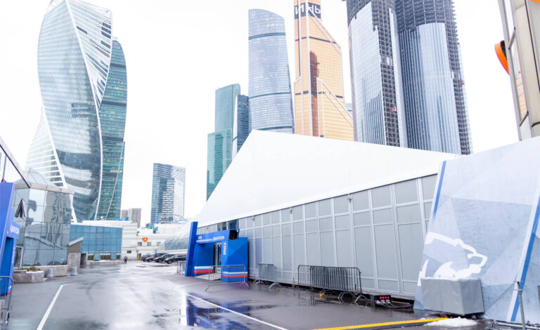 This commercial tent is of extraordinary significance. It is used for the 20th Congress of the United Russia party, Russia’s…